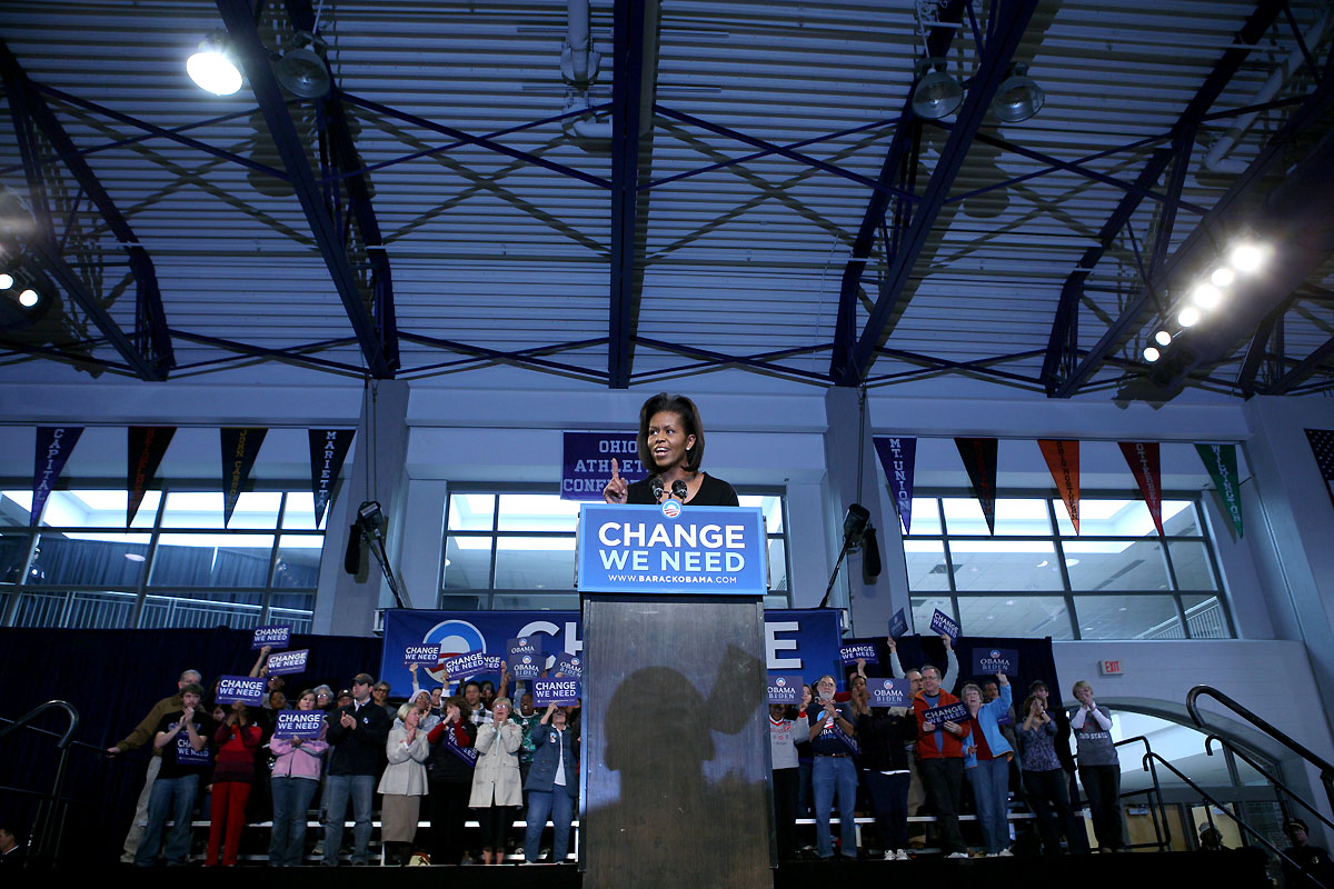 I går var jag på ett valmöte med Michelle Obama i en idrottshall i Columbus, Ohio. Barack själv hade tagit ledigt ett och ett halvt dygn för att besöka sin sjuka mormor på Hawaii.