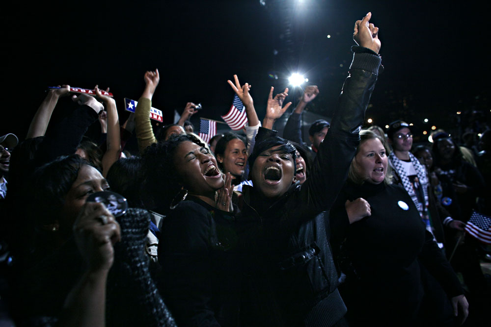 gräset i Grant Park efter att Obama hållt sitt segertal. De kan inte sluta att