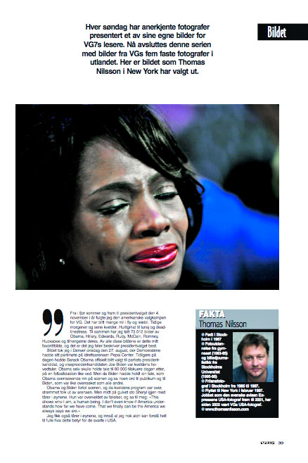 detta (kanske finns det inte fler fotografer att presentera?). Men de sista fem veckorna får vi som jobbar för VG i utlandet chansen att visa en bild.