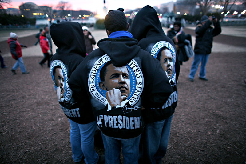 teveskärmar för de allra flesta) Obama svära presidenteden.