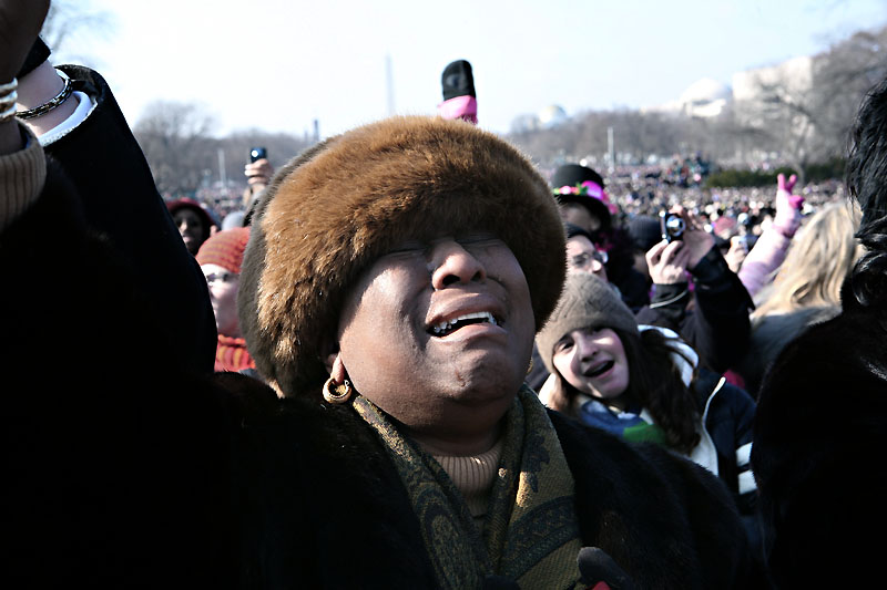 att se Obama i verkliga livet. De fick nöja sig med jättelika TV-skärmar. Det