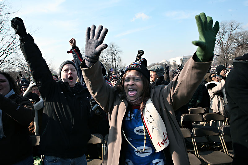 Obama ska komma in så bryter publiken ut i ett spontant och högljutt ”Obama,