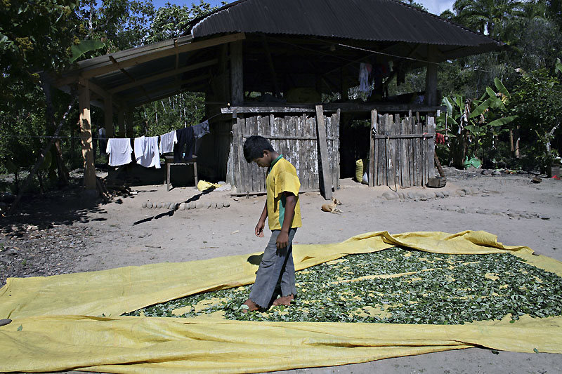 odlingen sedan vidare till en ung kusin som stod och trampade kokablad framför