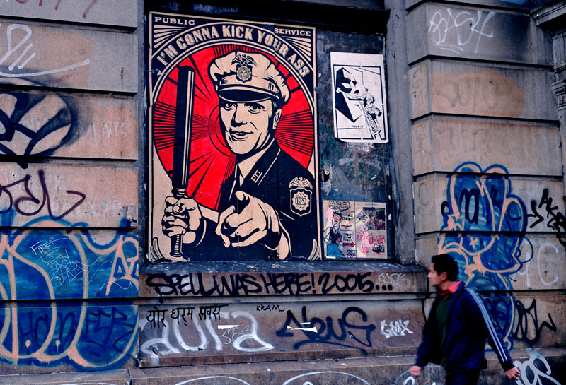 konstnären Shepard Faireys verk på bilden här ovan som jag tog i Soho för ett
