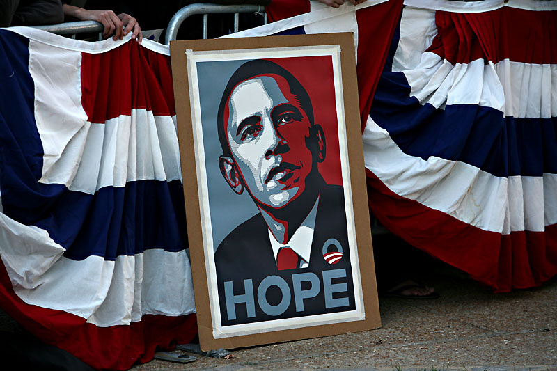 gjorde på eget bevåg den illustration som skulle komma att bli en den starkaste ikonen under valet (bilden nedan).