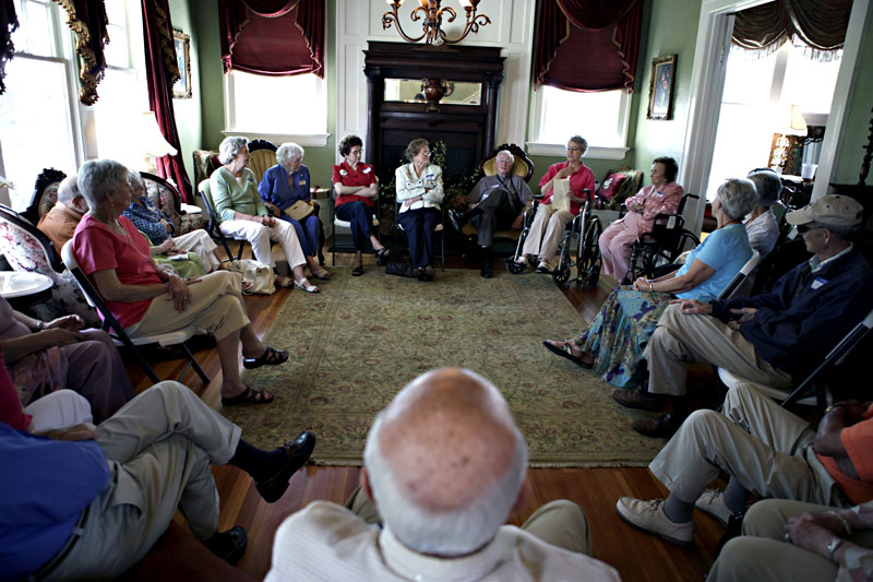 sig på stolar i en stor ring. De välkomnade mig glatt och började sedan läsa