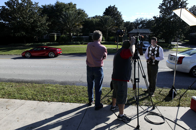 lyxiga bilar som passar eller kör in på det område som Tiger och Elin Woods bor