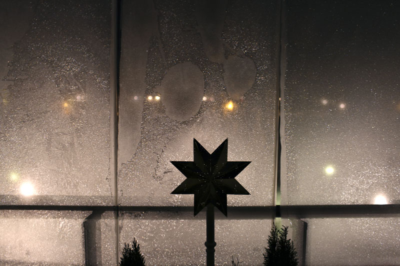 mormor och morfar i Farsta. På deras inglasade balkong var fönstret fruset vilket jag tyckte var väldigt vackert. Blev lite fixerad av det och fotograferade fönstret olika tider av dygnet.