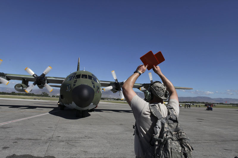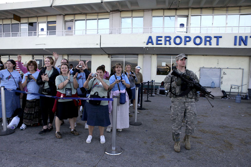 flygplasten i Port-au-Prince. Där har hjälpgrupper och militärer från olika