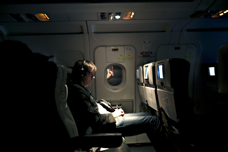 York. Jag och reporter Anders Giæver sitter på ett flygplan på väg till