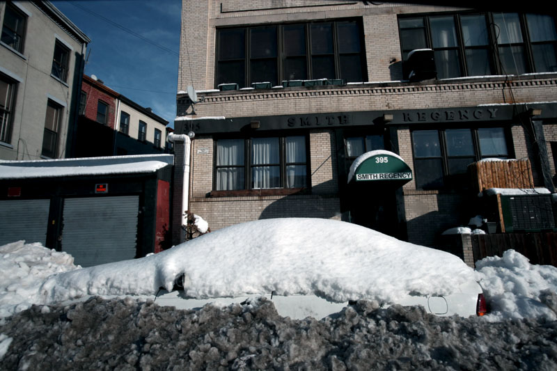 Snöstormen levde inte riktigt upp till förväntningarna. Åtminstone inte på 39:e gatan där det mest blev regnblandat och slask. Men i Central Park ska det tydligen ha kommit 25 centimeter och i Brooklyn, där jag var och jobbade under torsdagen, verkade snön ha haft större framgång. Vilket en bilägare på Smith Street snart kommer att upptäcka.