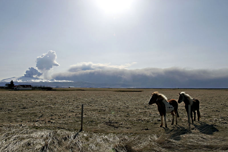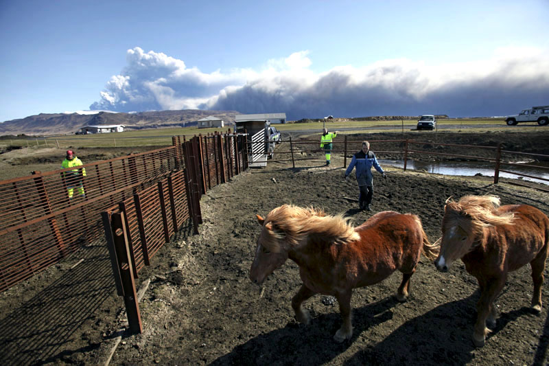 islandshästar i ladan innan han evakuerades för natten. För att skydda dem från fallande