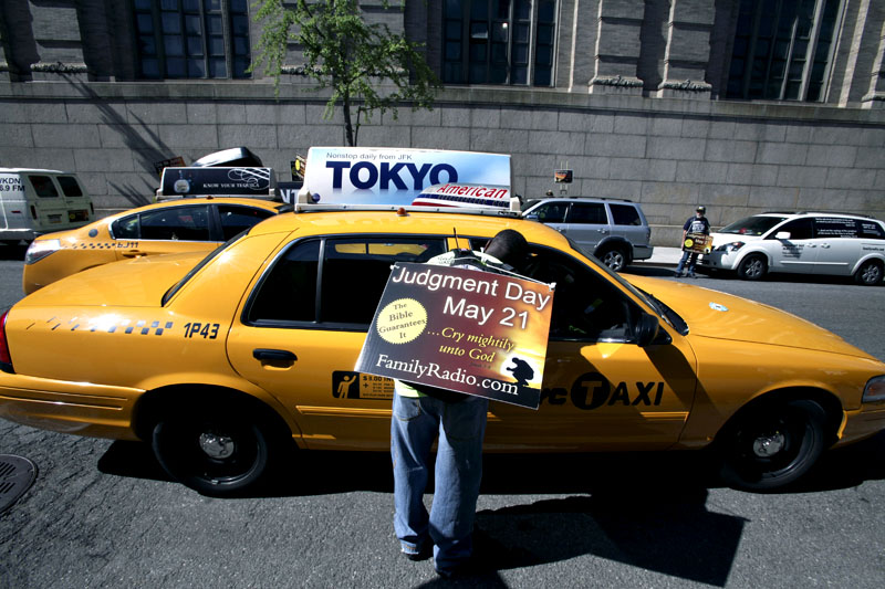 En doorman på 57:e gatan skrek glatt ut till det lilla demonstrationståget ”I’ll buy you all free lunch. Stop by on May 22nd.” En tandlös hantverkare hängde ut ur ett bilfönster och sjöng några strofer ur en R.E.M.-låt: ”It’s the end of the world as we know it and I feel fine”. En reklamlappsutdelare tog en pamflett om jordens undergång men såg till att ge en av sina broschyrer tillbaka. Den erbjöd domedagsprofeten trimning av ögonbrynen för sex dollar samt body waxing. Priset för det sistnämnda framgick inte.
