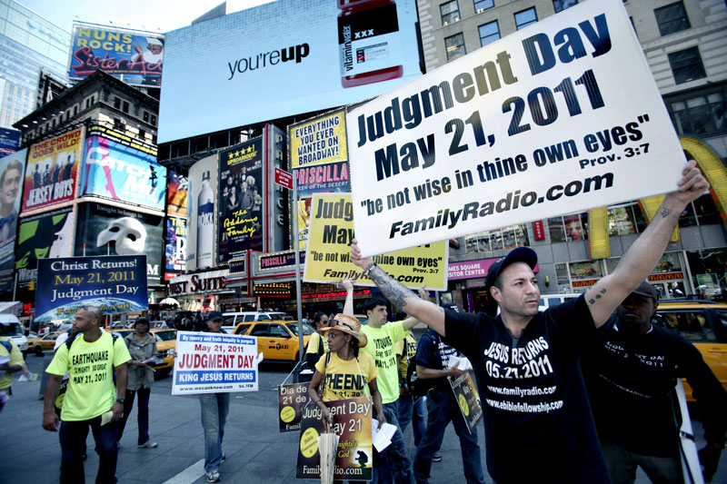 Den 21 maj är det slut på det roliga för alla utom 200 miljoner människor, levande och döda, av gud utvalda. I all fall enligt den grupp människor som paraderade på New Yorks gator häromdagen. Om sju dagar kommer det att vara en stor jordbävning och Jesus kommer tillbaka påstår de.