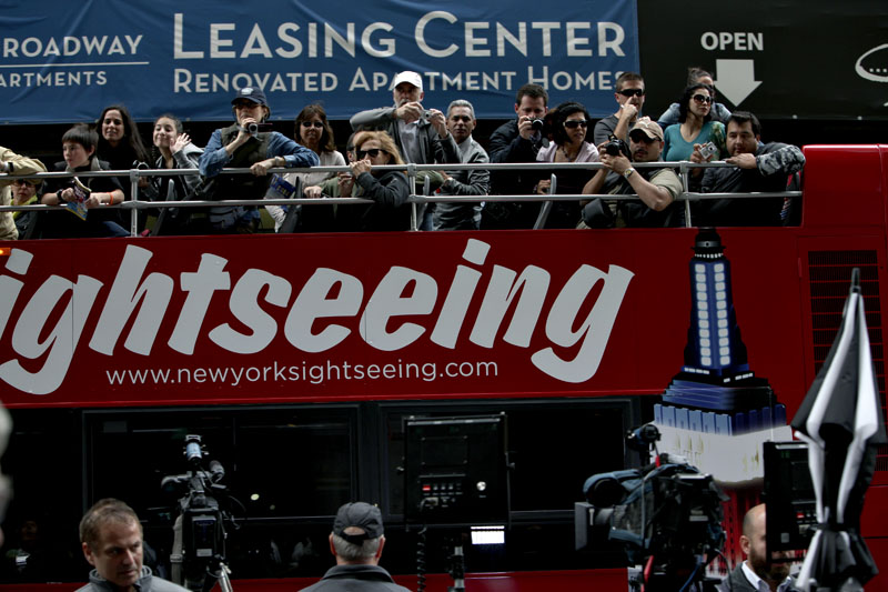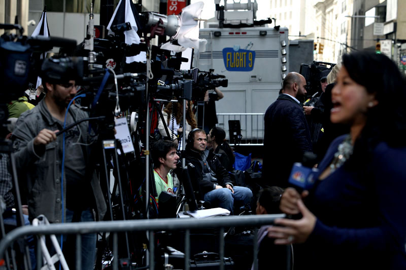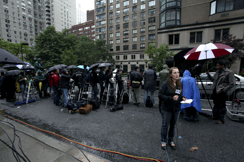 Det har varit en sån där vecka när vi pratat med grannar i Bronx, hotellstäderskor vid Times Square och då vi stått timmar utanför olika byggnader med hundratals andra journalister från världens alla hörn i väntan på ingenting. I ett stilla vårregn. Och nere på Broadway alldeles vid Wall Street hängde turisterna ut från övre våningen på sightseeingbussarna som passerade var femte minut för att om möjligt kunna knäppa en bild eller två av alla oss stackars journalister.