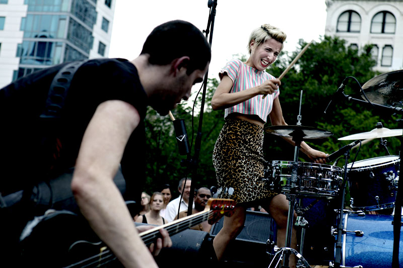 I går när jag gick över Union Square råkade jag hamna mitt i en gratiskonsert med ett band från Brooklyn som heter Hank & Cupcakes. De var bara två personer. En bassist och en trummis. Trumsetet var längst fram på scenen och trummisen spelade ståendes samtidigt som hon sjöng. Det lät bra. Det var sen eftermiddag med mjukt fint ljus och en skön kombinerad känsla av ”efter jobbet" och sommar.