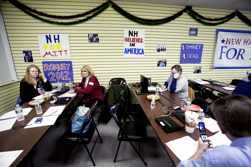 Jag och reporter Eirik Mosveen besökte på valdagen Romneys högkvarter i Manchester. Där satt frivilliga och betade av listor med telefonnummer till väljare för att försöka vinna över ytterligare några röster i sista stund. Det tog fem sekunder innan en välklädd tjej i 25-årsåldern var framme vid oss och frågade vilka vi var. Nej, det gick inte att ställa några frågor till någon där. Kontakta vår PR-man var beskedet. Men telefonnummer lämnades inte ut. Bara mejladress. Inte så bra när man bara har timmar till deadline.