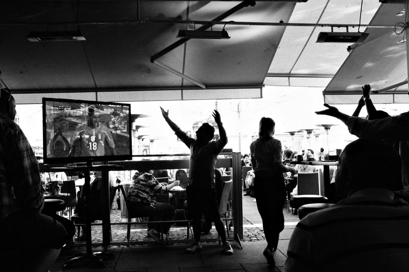 sportreportrar och fotbollspelare och tittade på femhundra repriser i slow