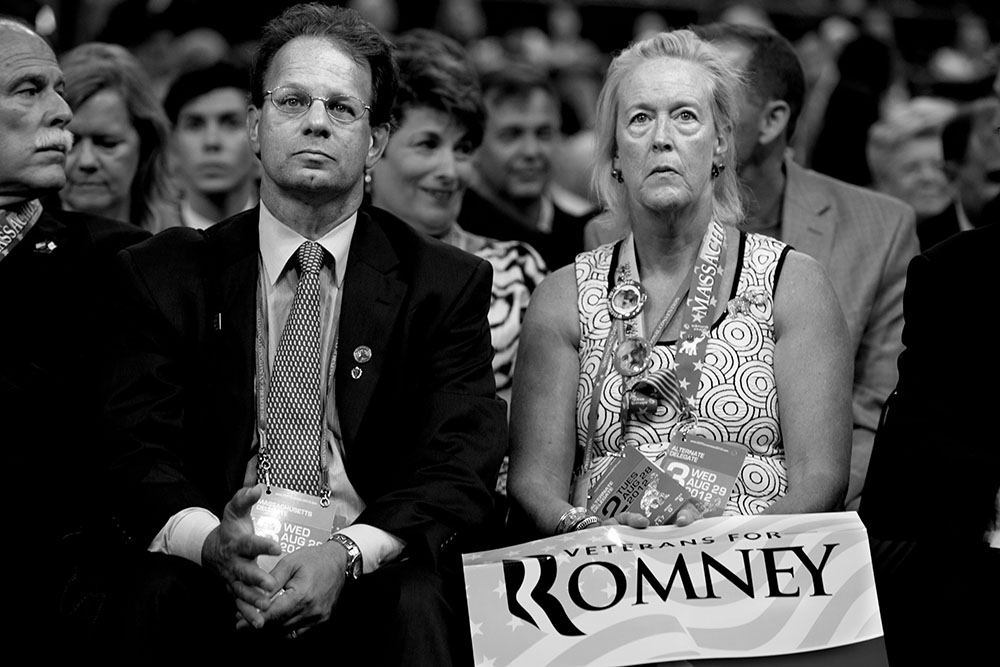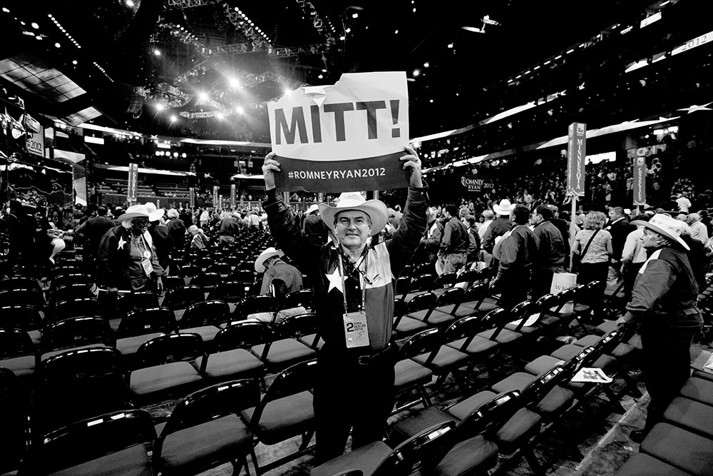 De fyra första bilderna nedan är från republikanernas konvent i Tampa och de fyra följande från demokraternas i Charlotte.
